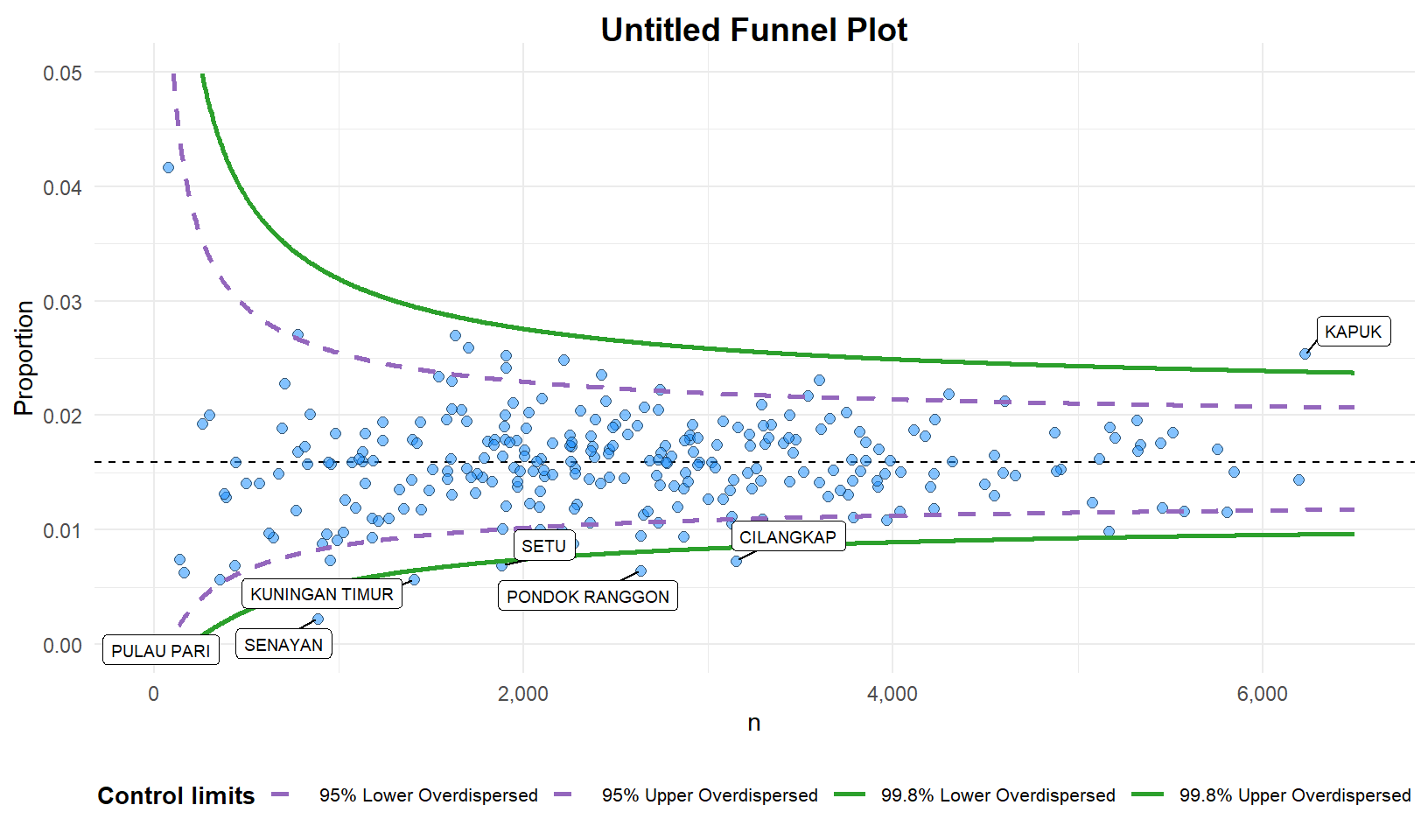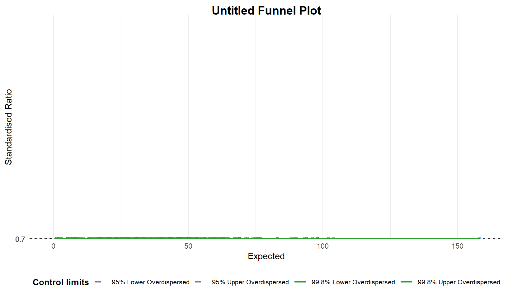 limit: plot limits (95 or 99).label_outliers: to label outliers (true or false).Poisson_limits: to add Poisson limits to the plot.OD_adjust: to add overdispersed limits to the plot.xrangeandyrange: to specify the range to display for axes, acts like a zoom function.Other aesthetic components such as graph title, axis labels etc.