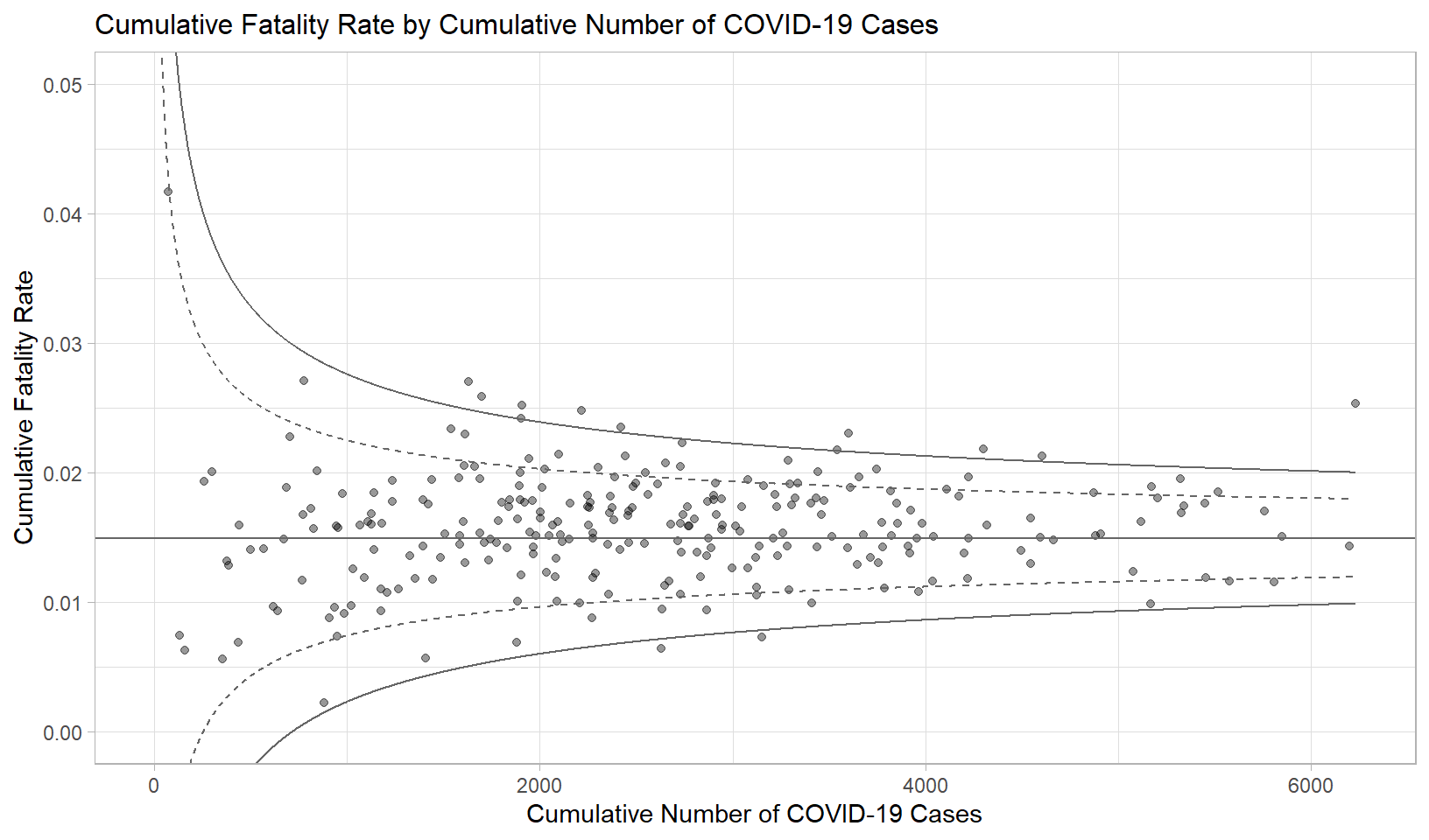 To plot the funnel plot from scratch, we need to derive cumulative death rate and standard error of cumulative death rate.