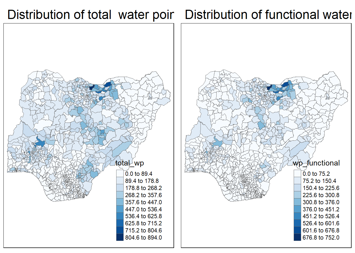In much of our readings we have now seen the importance to map rates rather than counts of things, and that is for the simple reason that water points are not equally distributed in space. That means that if we do not account for how many water points are somewhere, we end up mapping total water point size rather than our topic of interest.