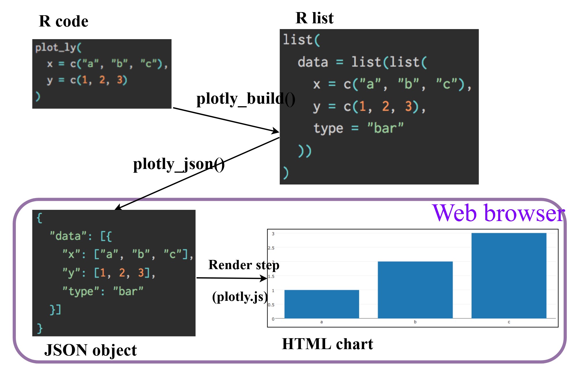 Plotly R Library Fundamentals is a good place to learn the fundamental features of Plotly’s R API.